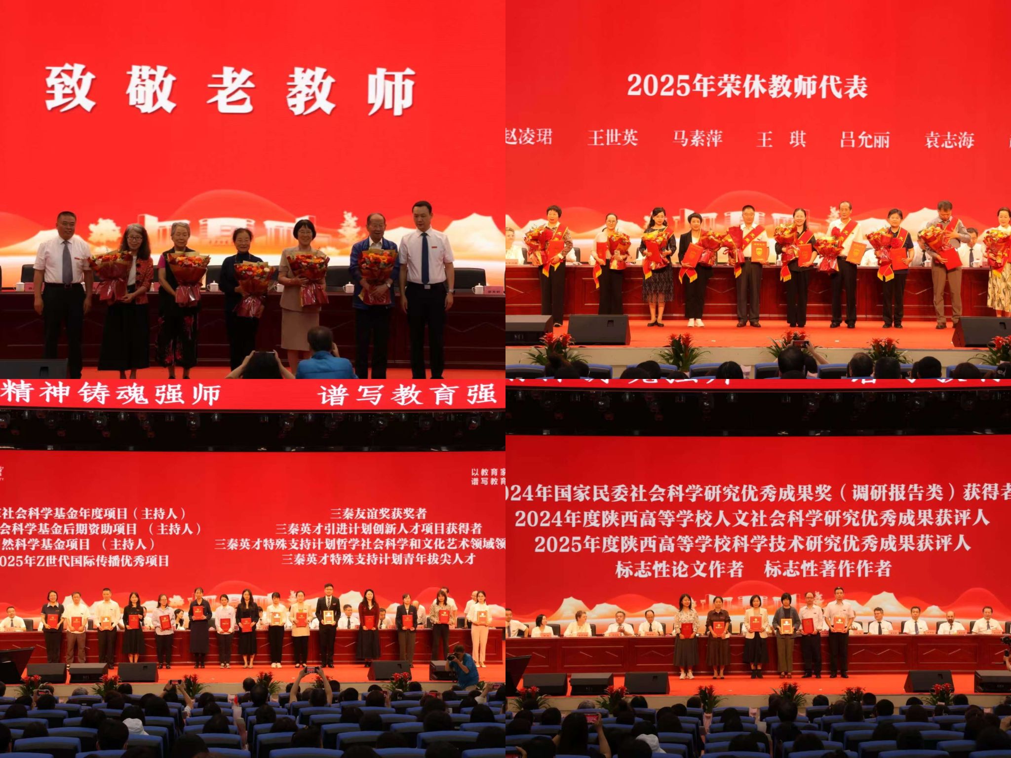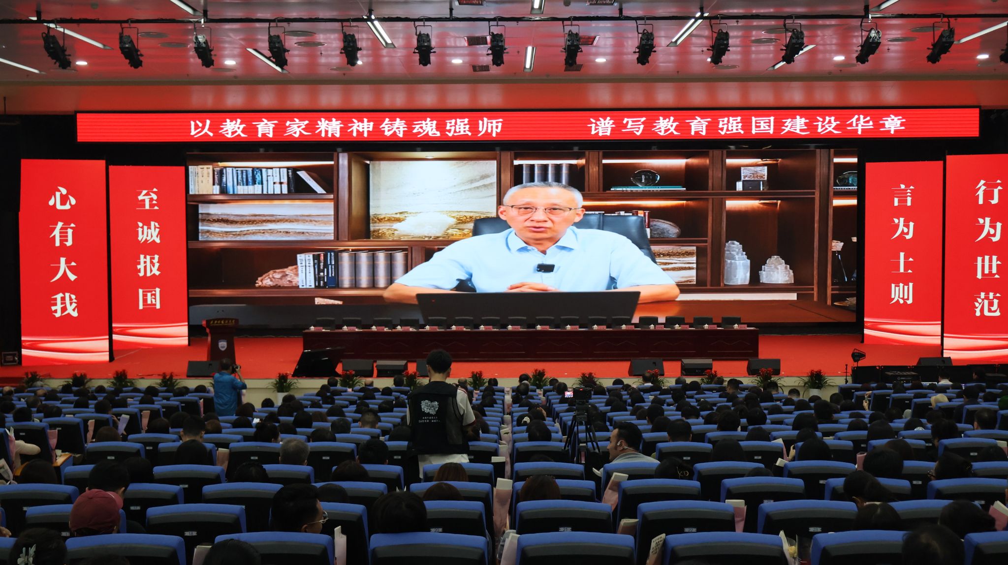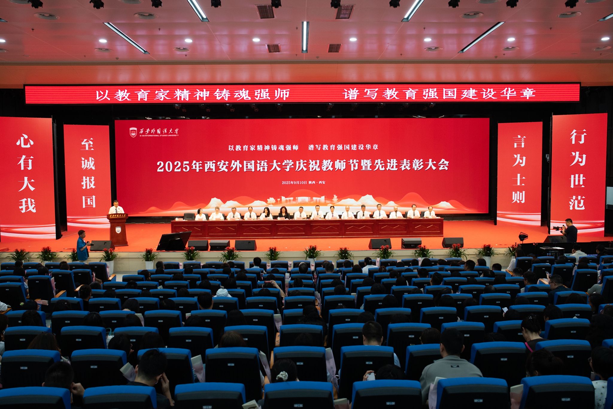 学校于9月10日在长安校区启智楼报告厅隆重举行庆祝教师节暨先进表彰大会。大会主题是“以教育家精神铸魂强师,谱写教育强国建设华章”。校党委书记刘振涛,校长吴耀武,副书记马洁、副书记王强,副书记、纪委书记姜劲波,副校长李京昊、副校长桑元峰、副校长邓滢、副校长黄立波,原副校长、二级教授党争胜,二级教授代表毋育新、温玉霞、杨鹏鹏,外籍教师代表杜布阔娃、百利威在主席台就座。学校党政领导、全体教职工、离退休教职工代表、国际专家教师代表一千余人参加表彰大会。大会由副校长黄建友主持。