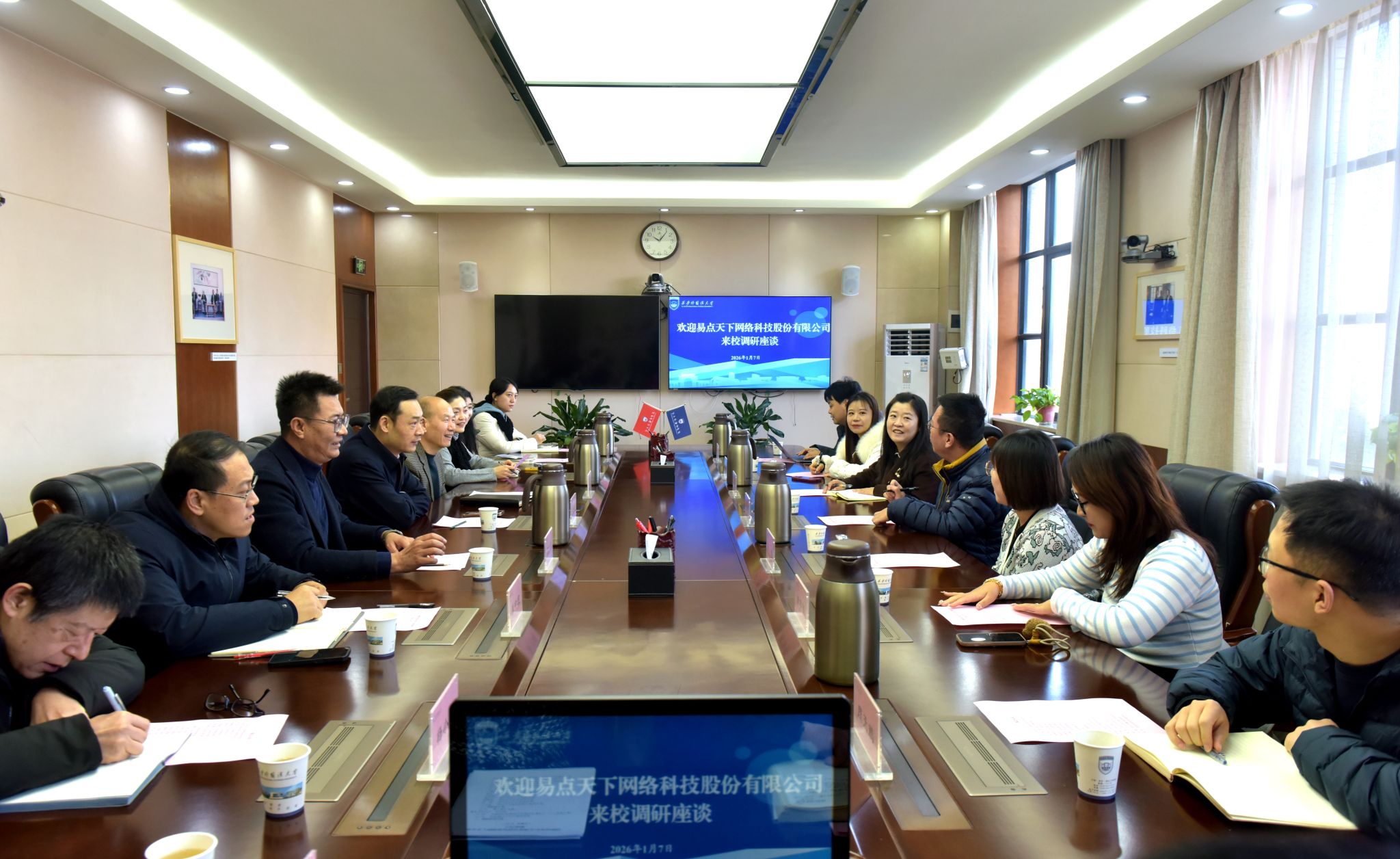 1月7日上午,易点天下网络科技股份有限公司联合创始人、副总裁兰向辉一行来校调研,围绕人才培养、产学研融合、国际传播协作等开展座谈。校长吴耀武,党委副书记王强,相关职能部门、学院负责人参加座谈。