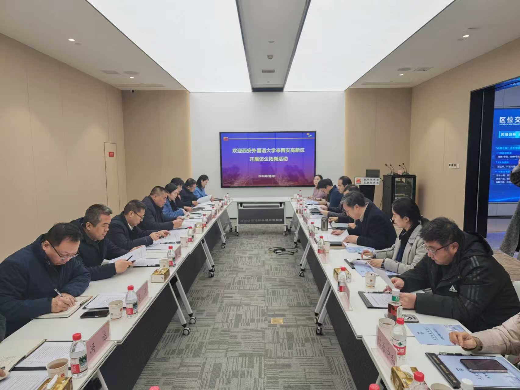 2月3日下午,党委书记刘振涛、副校长邓滢一行赴西安国家高新技术产业开发区开展访企拓岗促就业专项行动。学工部、国内合作与校友工作处、英文学院、新闻与传播学院、俄语学院、亚非学院、欧洲学院、商学院、经济金融学院等部门负责人参加。