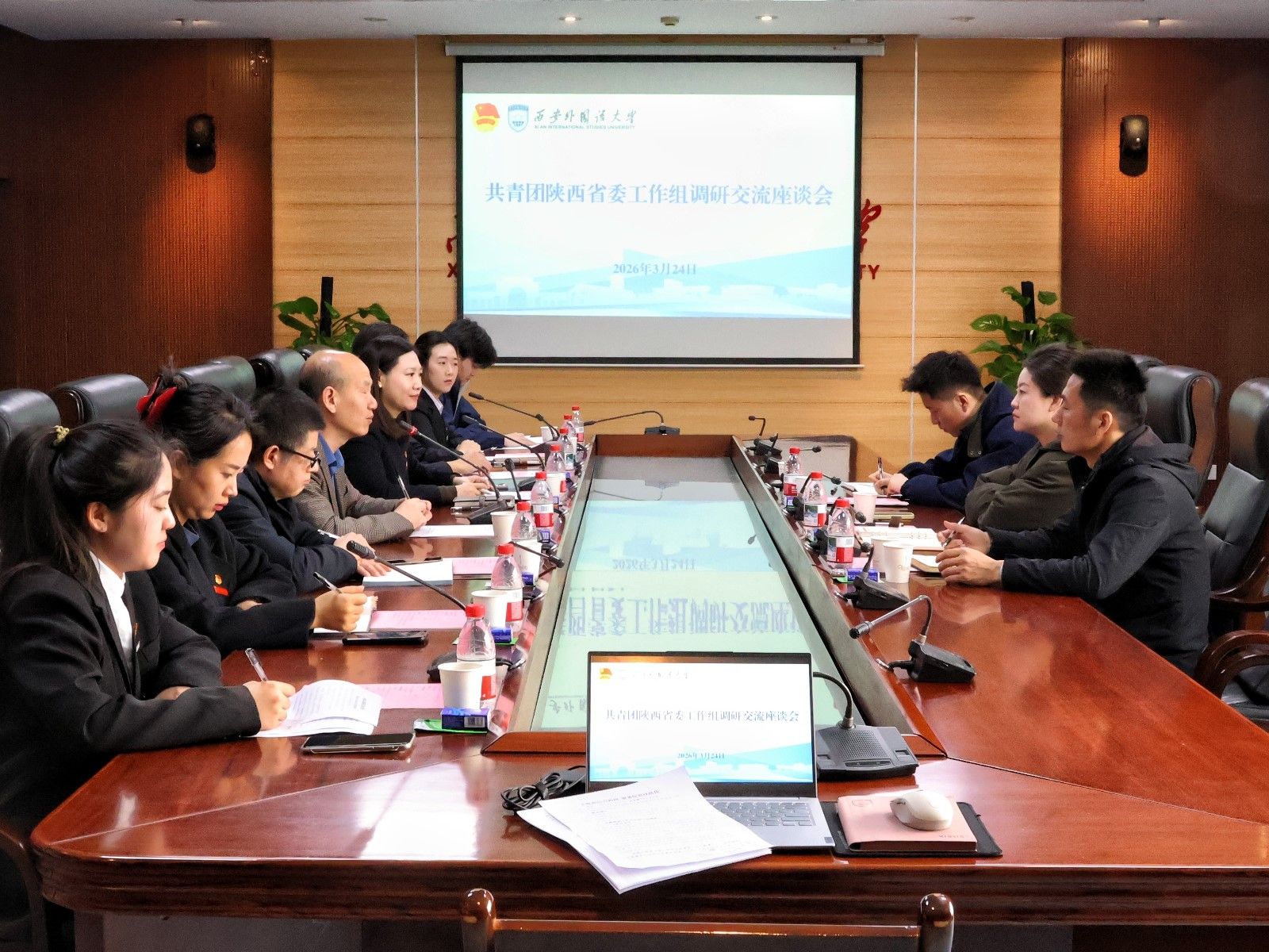 2026年3月24日,共青团陕西省委副书记吴斯怡一行来校调研学校西部计划、研究生支教团及志愿服务相关工作,团省委青社部副部长李东陪同调研并参加座谈。校党委书记刘振涛、校长吴耀武会前与调研组成员会谈交流。校党委副书记王强,校团委、学工部相关工作负责人及师生代表参加座谈。座谈会由校团委副书记(主持工作)张晶主持。